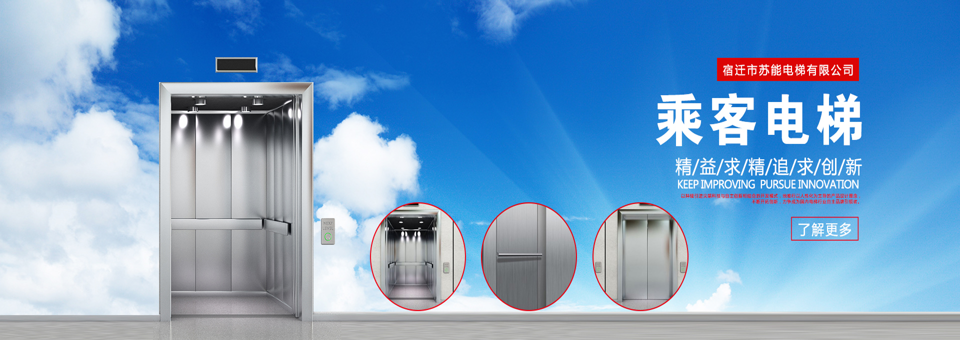 江苏苏能电梯有限公司地处有“ 中国白酒之都”美誉的江苏宿迁市,公司成立于2010年,并于同年取得电梯安装维修B级资质。现办公面积260平方米,注册资金1000万,员工人数30余人.设办公室、财务部、质量技术部、工程部和维保部,有经验丰富的管理团队和较强的施工、维保队伍。